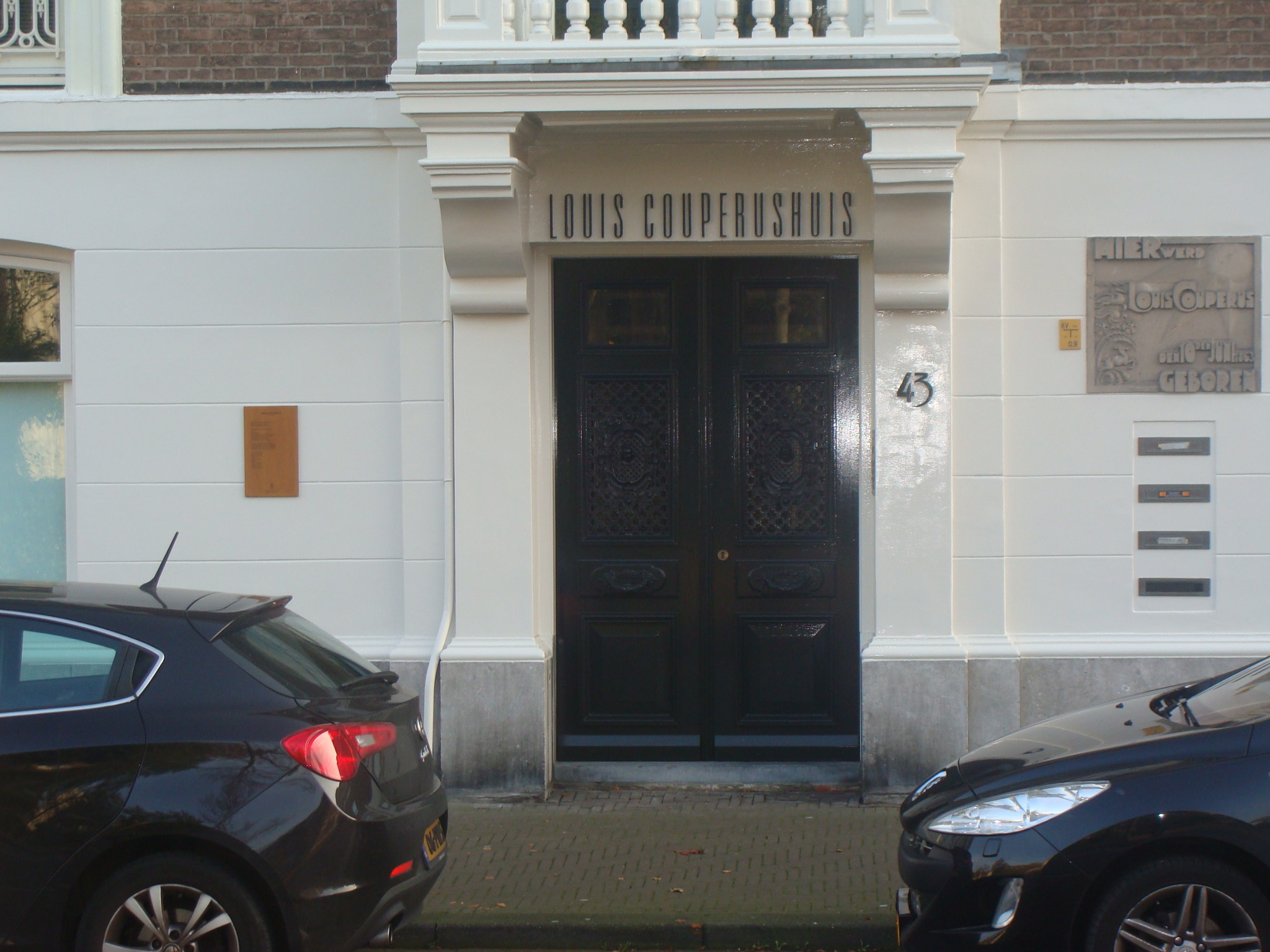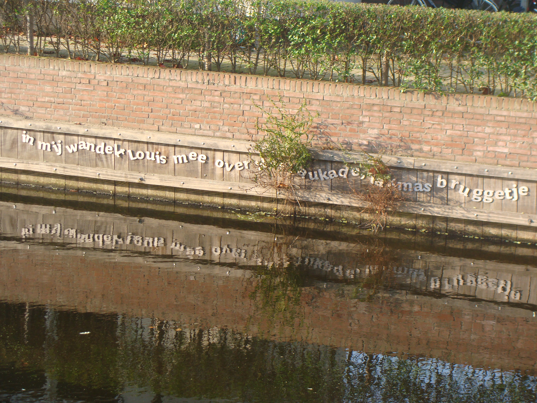 Ik was toch nieuwsgierig of het er nog zou zijn: mijn gedicht Liedje voor een kleine ziel aan het geboortehuis van Louis Couperus. En jawel. Ook de dichtregel bij het water is nog goed te lezen. (foto’s: Ronny Boogaart, 30 oktober 2014)