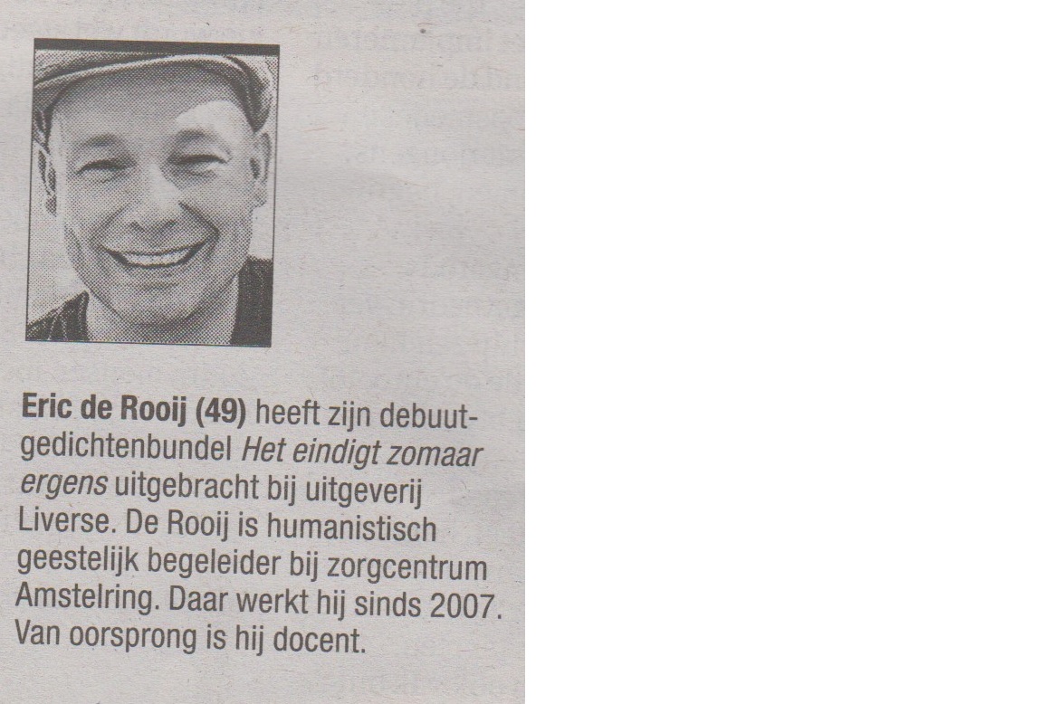 Vandaag, 11 februari, staat er, naar aanleiding van de verschijning van Het eindigt zomaar ergens, een berichtje in Het Parool (en wel in de rubriek Mensen).