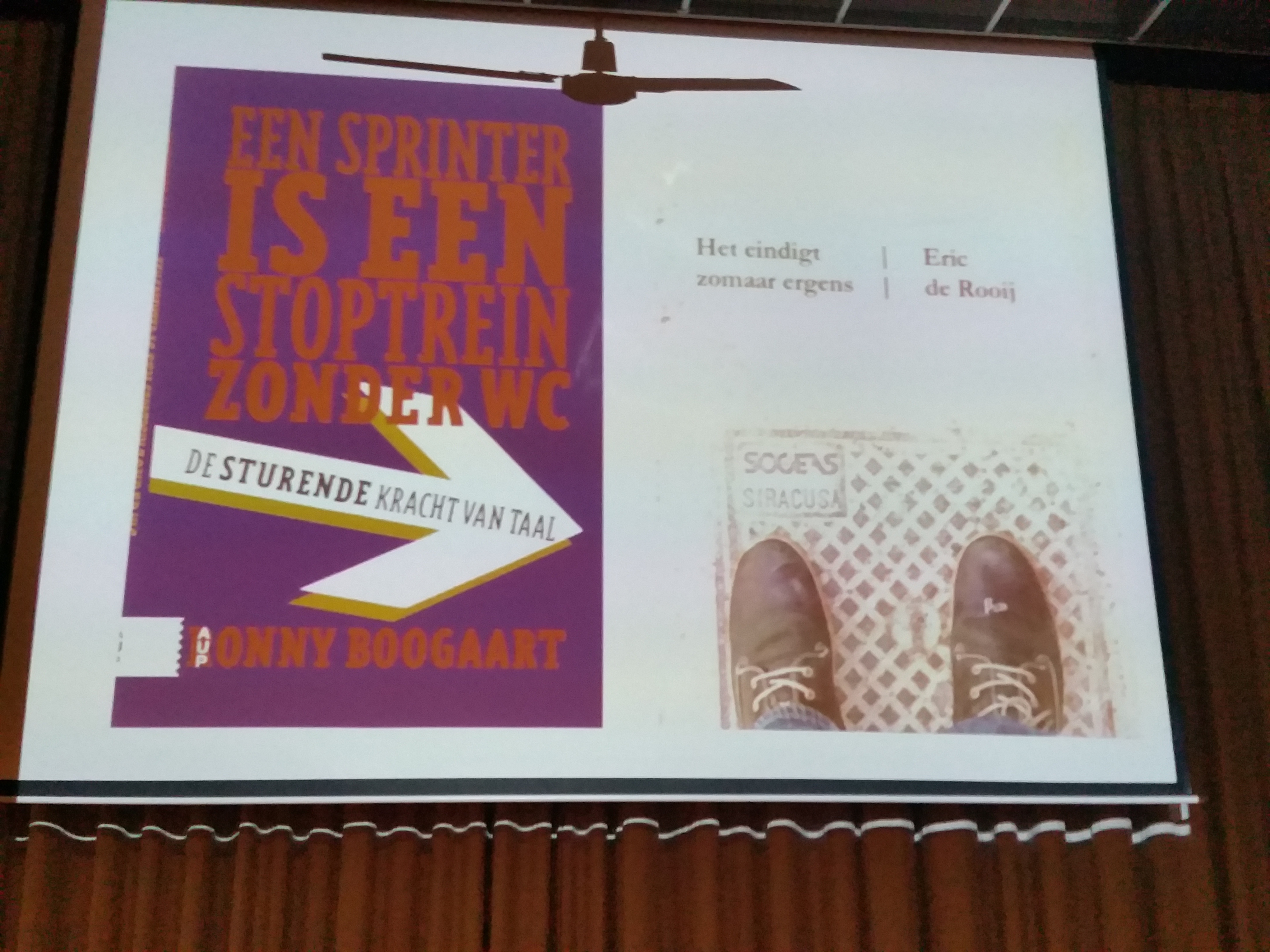 Op 5 maart jl vond in het Huis van de Wijk in Buitenveldert de dubbelpresentatie plaats van mijn dichtbundel Het eindigt zomaar ergens en Een sprinter is een stoptrein zonder wc. De sturende kracht van taal van Ronny Boogaart. Met medewerking van Jos Versteegen, Kees Klok, Mario Molegraaf, Hans Bomhof en Theo Janssen. Er is een filmpje gemaakt. Helaas is de geluidskwaliteit slechts optimaal voor kijkers met goede oren.