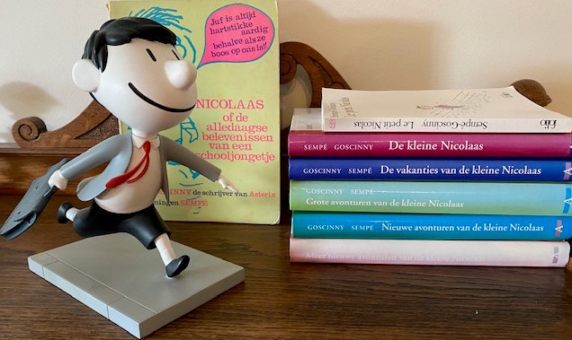 Op mijn bureau staat een beeldje van de kleine Nicolaas. Grijs jasje, rode stropdas, tas, grote glimlach, hollend naar school. ‘Juf is altijd hartstikke aardig behalve als ze boos op ons is!!’ zegt Nicolaas in een tekstballon op het omslag van het eerste deel. Ik kreeg het als tienjarige van een tante die pertinent geen stripboeken cadeau wilde geven. ‘Dit is de enige tekstballon in het hele boek,’ zei ze, en liet als bewijsvoering de bladzijden langs haar duim gaan. Toen had ik er de pest over in, nu ben ik haar dankbaar, want ‘de alledaagse belevenissen van een schooljongetje’, zoals de ondertitel luidt, bleken zo humoristisch onalledaags dat mijn moeder me geregeld vroeg: wat lees je, wat is er zo grappig aan? Lees verder op Literair Nederland.