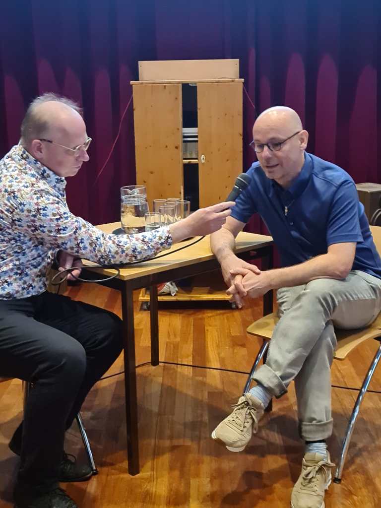Enkele foto’s: Coen Peppelenbos interviewt Eric de Rooij over Augustus. ‘Het is de bedoeling dat de antwoorden langer zijn dan twee woorden.’ Toen kwamen de zinnen.