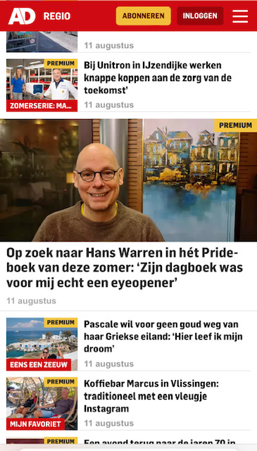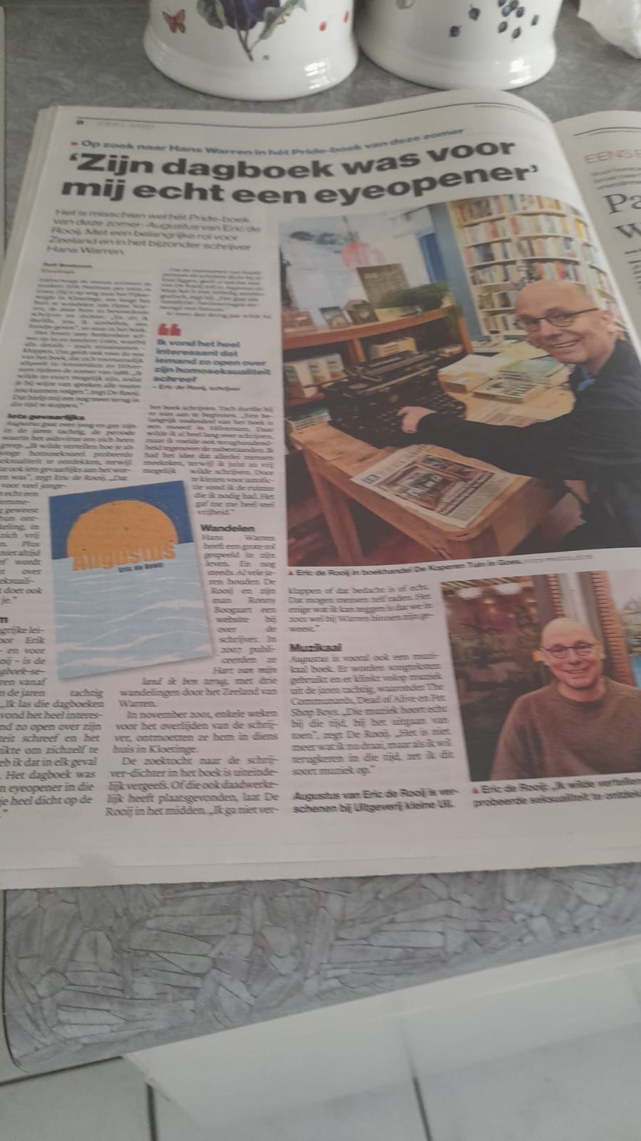 Augustus verovert Zeeland! Vorige week verscheen tegelijkertijd in de PZC, BN de Stem en Algemeen Dagblad (regio Zeeland) het interview dat Rolf Bosboom met mij had over mijn boek Augustus. De kop: Op zoek naar Hans Warren in hét Pride-boek van deze zomer. Een mooi gesprek over de rol van dagboekschrijver en dichter Hans Warren in mijn roman.