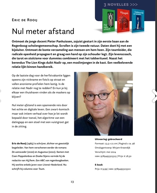 Deze week verscheen de voorjaarsaanbieding van Uitgeverij kleine Uil. Daarin ook de aankondiging van mijn nieuwe boek: Nul meter afstand. Een novelle over online dating en het verlangen naar echt contact.