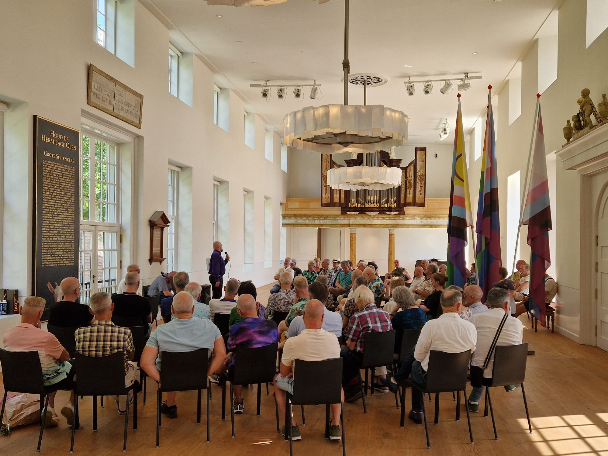Opkomst was boven verwachting, zo’n 65 tot 70 bezoekers. Met veel dank aan Peter voor de techniek en aan het COC en de Shakespeare Club die de mogelijkheid gaven om hier in deze prachtige zaal op te kunnen treden. (foto’s: Ronny Boogaart)