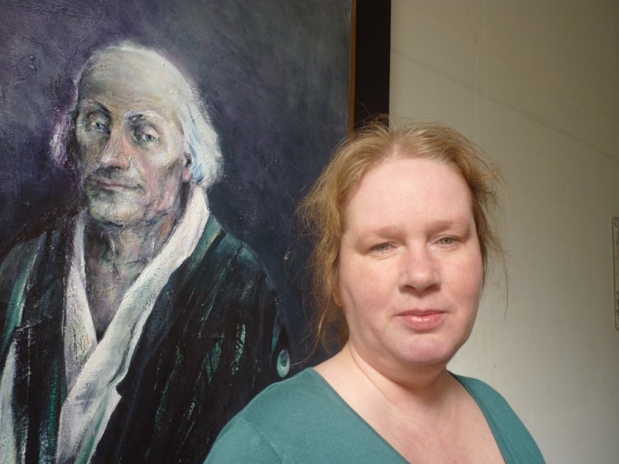 Eerst herkende ze me niet, man met pet en sjaal. Daarna nam ze mijn jas aan, zette koffie en liet me dwalen langs al haar kunstwerken. Ze liet me het portret zien van Emily Dickinson voor het omslag van de Friese uitgave van haar gedichten. Die ogen. Telkens zijn het de ogen. Ook bij Erasmus. Voor Erasmus de reiziger, de pas verschenen keuze uit zijn brieven, is opnieuw een portret van haar gekozen. Begin dertig is hij. Hij heeft bekend naakt te willen dansen voor die ene jongen. Vorsend kijkt hij de lezer aan, zoals hij ook naar die jongen had gekeken.